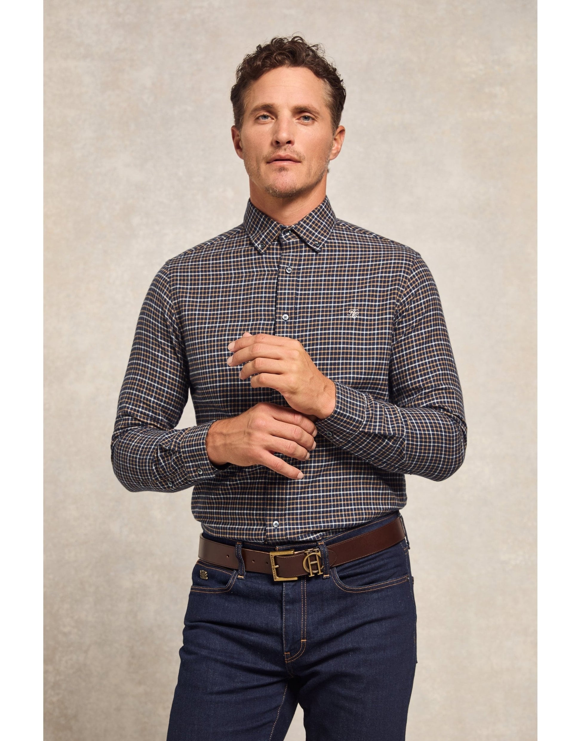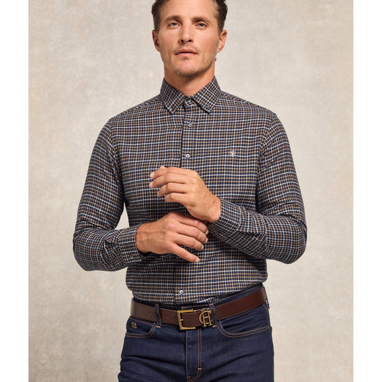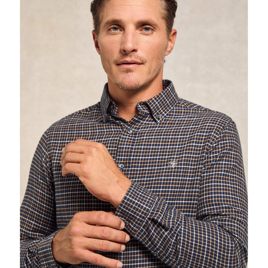 With heritage Oxford button-down styling and preppy yarn-dyed stripes, this shirt is a modern take on timeless sophistication. Crafted from a brushed cotton fabric with a sharp, tailored silhouette, this shirt is a perfect balance of tailored precision and contemporary style. Detailed with delicate crest embroidery to the chest with Jacquard taping to the internal seams. Elevated with branded shell buttons.