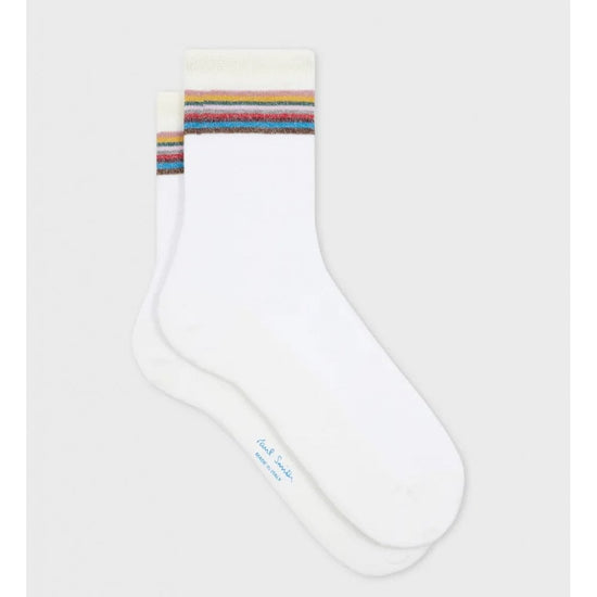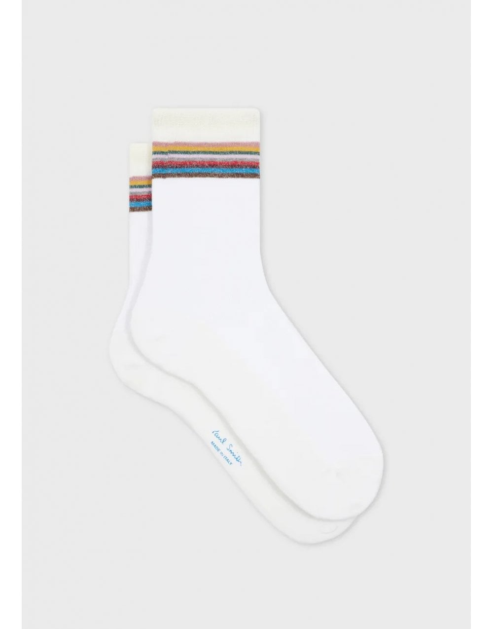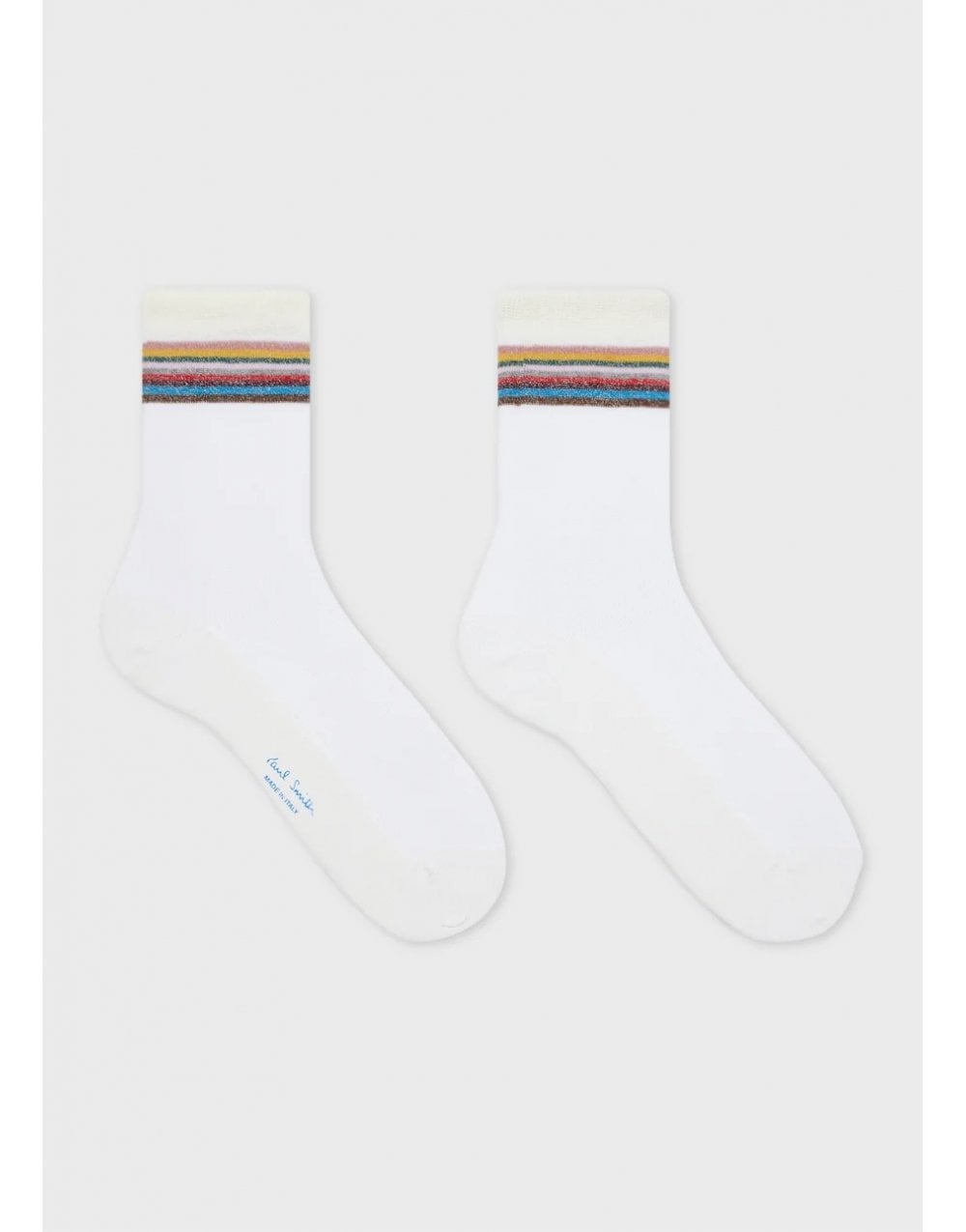 Made in Italy from a soft cotton-blend, these white socks feature a contrasting 'Signature Stripe' trim around the ankle. Complete with sheer paneling on the front, these socks are a fun, colourful finishing touch to any outfit.